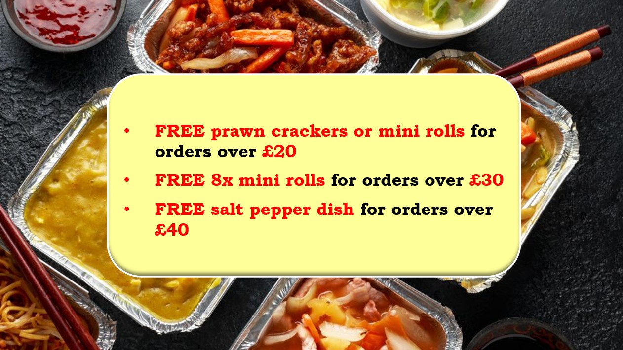 We are proud to be the leading local Chinese Takeaway agreed by many customers. We hope that you will enjoy the perfect authentic Chinese cuisine and we welcome any feedback that you wish to make
