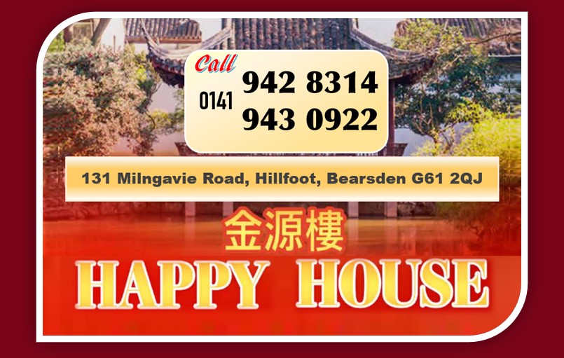 Happy House @Bearsden Chinese Takeaway serves variety of delicious Chinese dishes. We’re passionate about delivering hot, great tasting, freshly prepared Chinese food to our customers